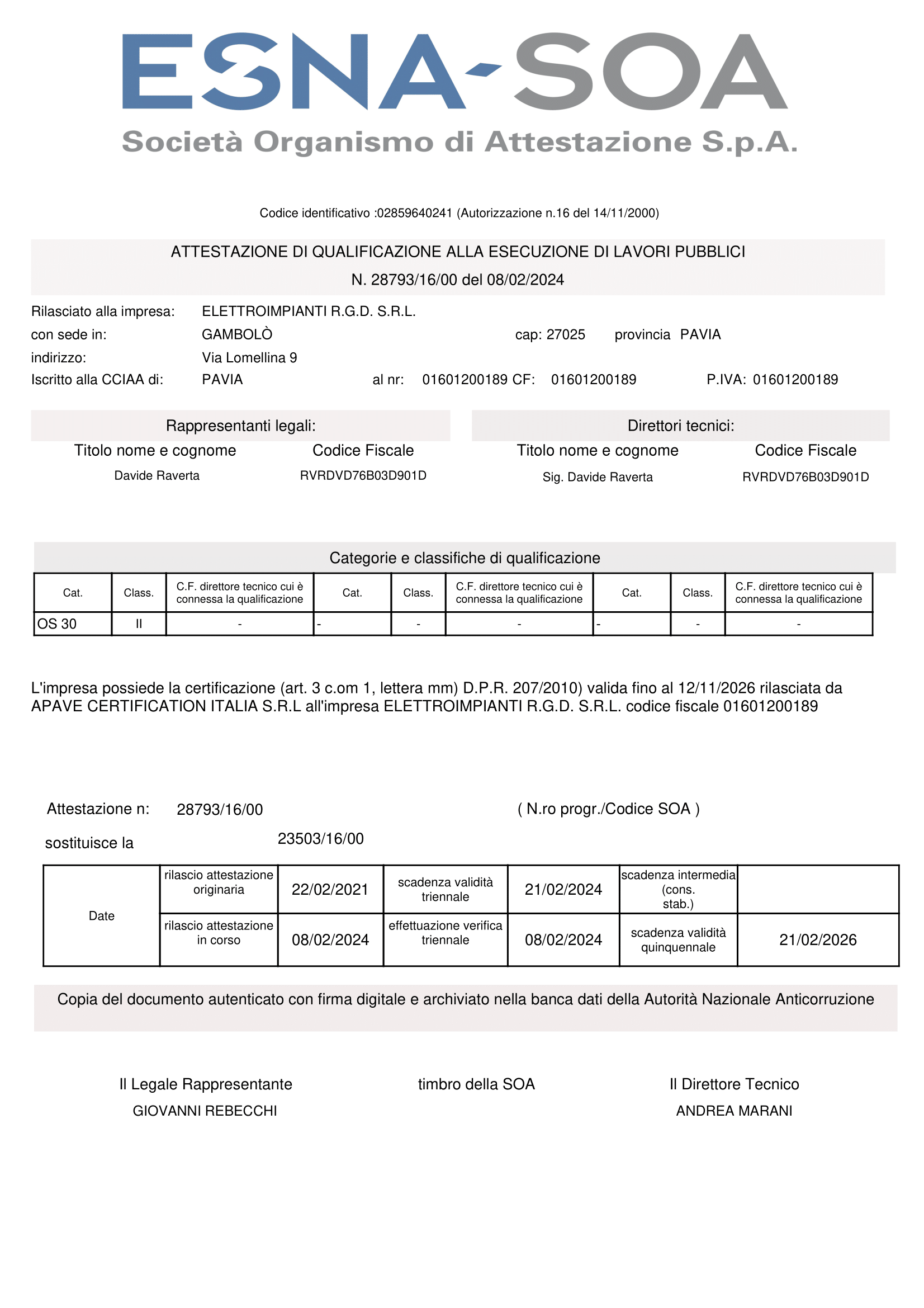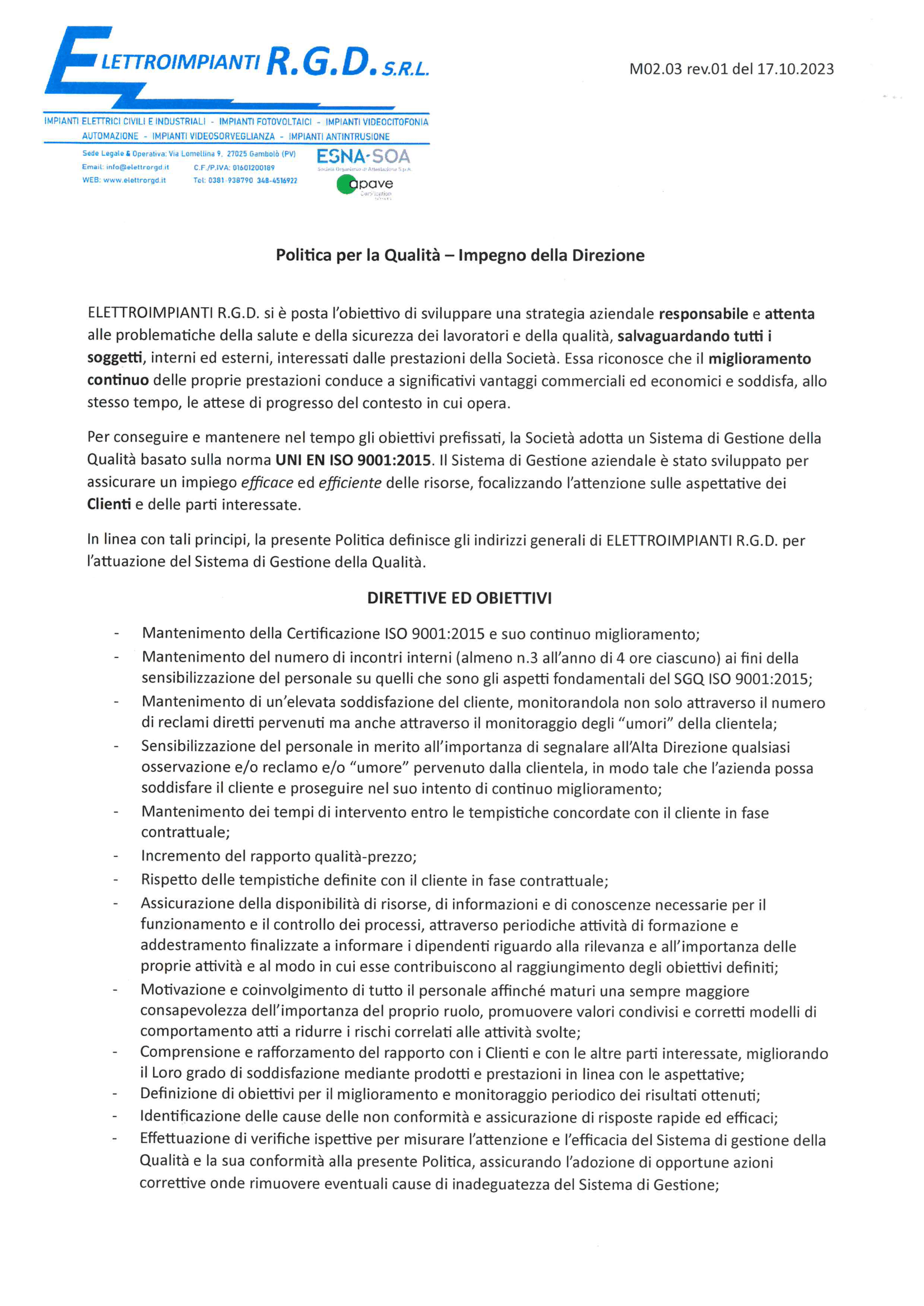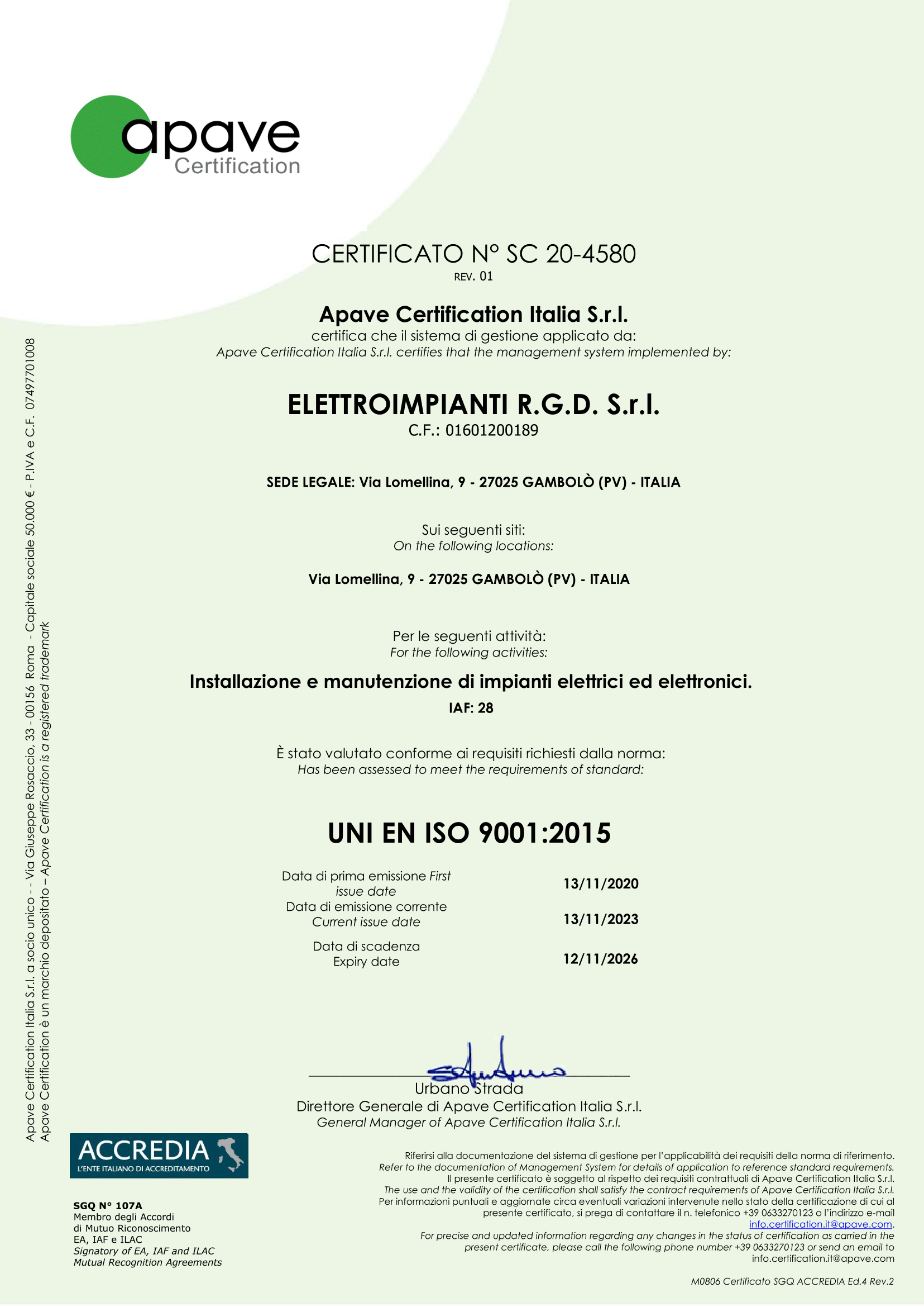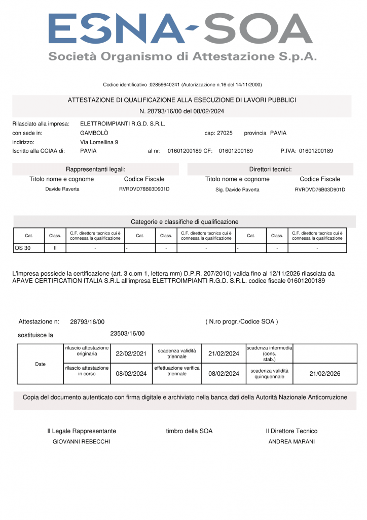 Elettroimpianti R.G.D. S.r.l. – P.IVA 01601200189
